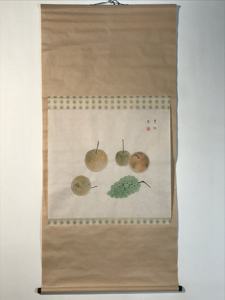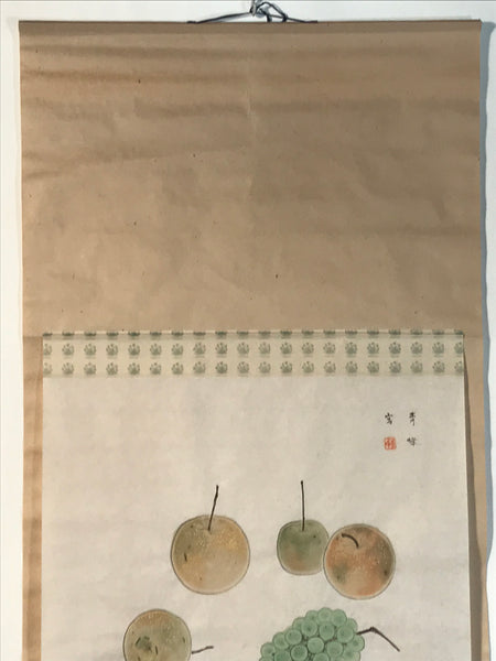 Japanese Hanging Scroll Kakejiku Vtg Still Life Fruits Pear Grapes Color KJ167