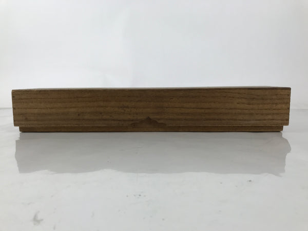 Hand-crafted and in a natural wood color, this sturdy, slender box is made to store a hanging scroll, or kakejiku. The lid fits overlapping on the top. It has two adjustable carved wooden brackets attached to the inside used to keep a scroll in place.