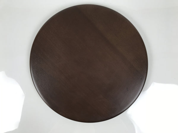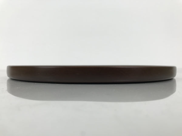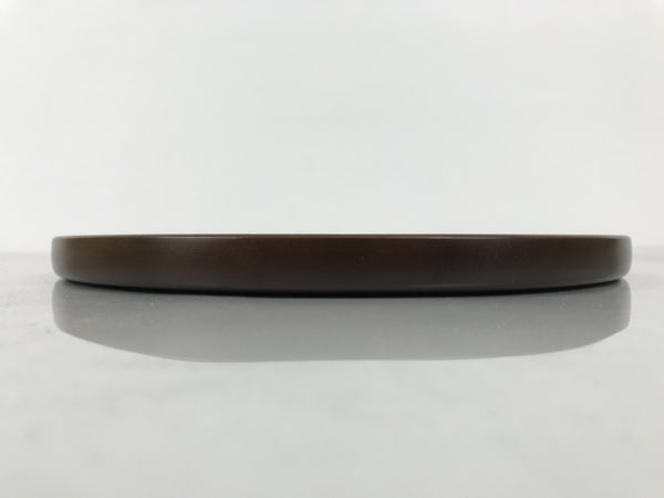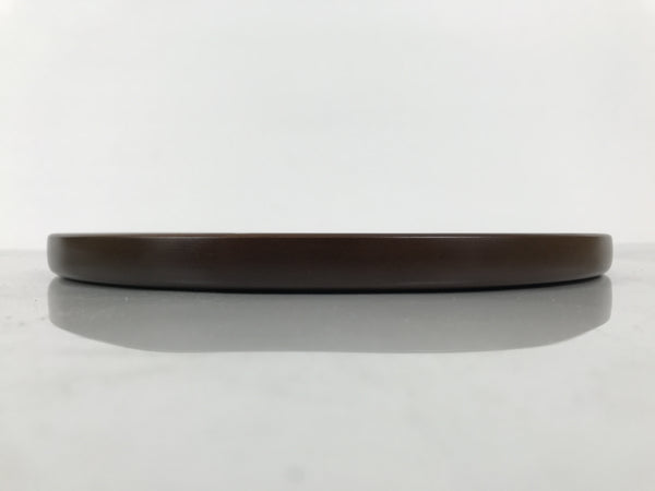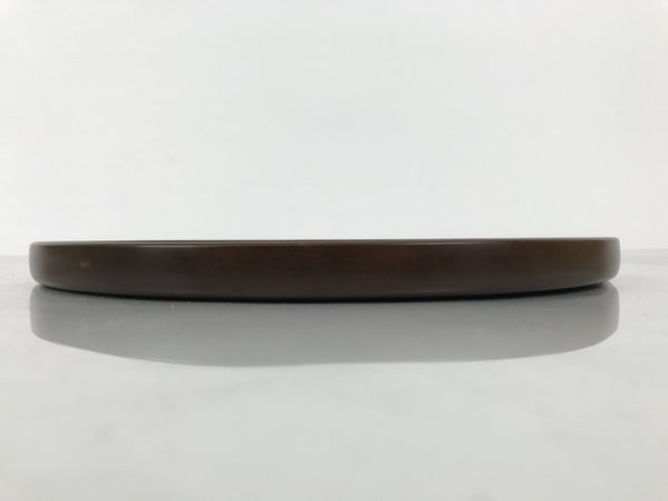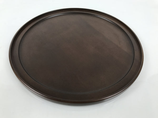 Japanese Brushed Lacquer Wooden Serving Tray Obon Vtg Round Brown Grain L610