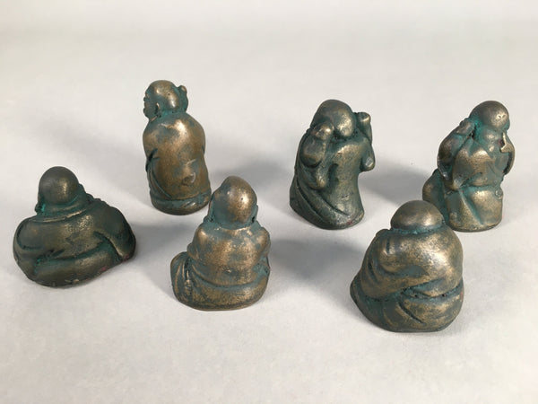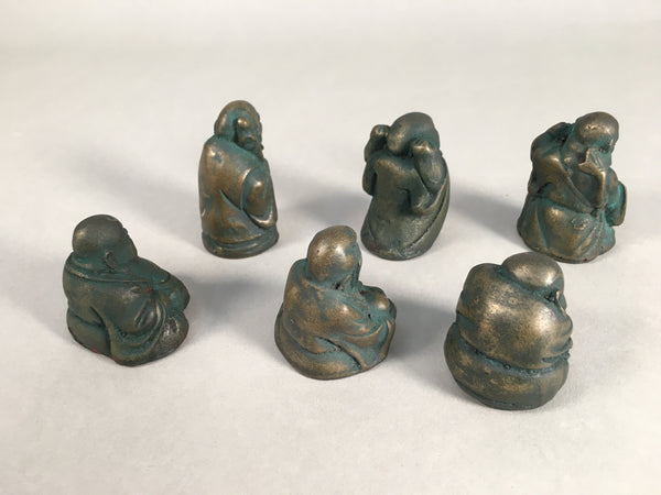 Chinese Iron Figurine 6pc Set Vtg Buddhist Monk Metal Okimono Statue BD590