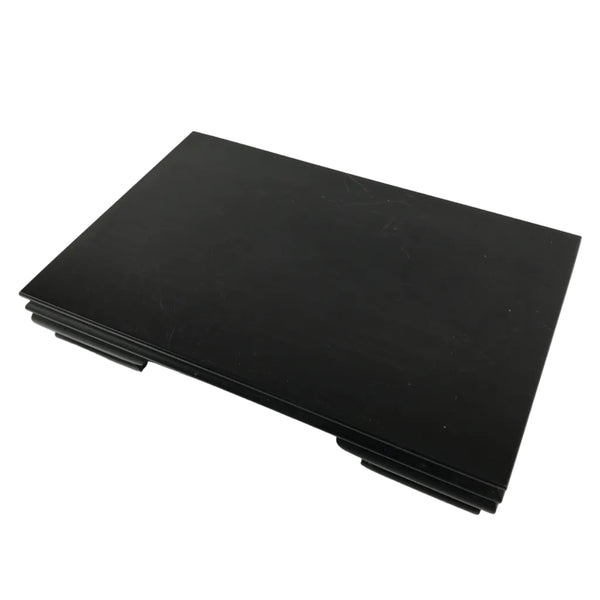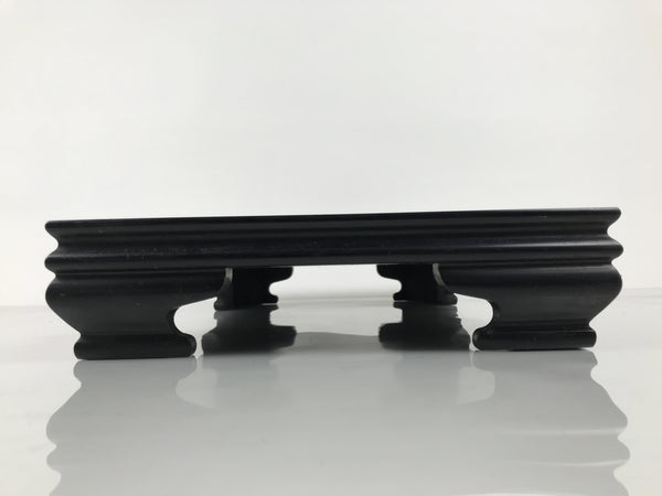 Used for the display of flower vases, ikebana arrangements, bonsai, and more, this large, rectangle-shaped kadai stands on four sturdy and short legs. The color is a dark brown, almost black, that subtly showcases the stand's natural wood grain. There are felt pads on the legs to prevent scratching other surfaces.