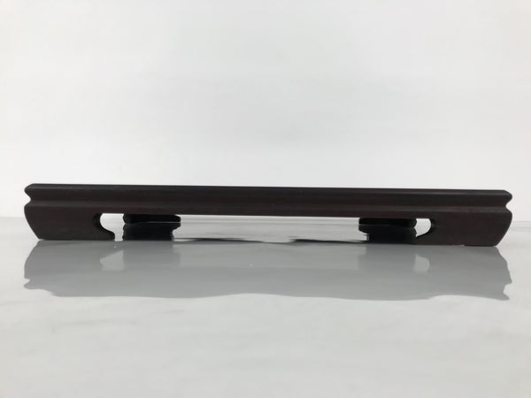 Used for the display of flower vases, ikebana arrangements, bonsai, and more, this large, rectangle-shaped kadai stands on four sturdy and short legs. The color is a dark brown and coated with a clear lacquer finish that showcases the stand's gorgeous natural wood grain.