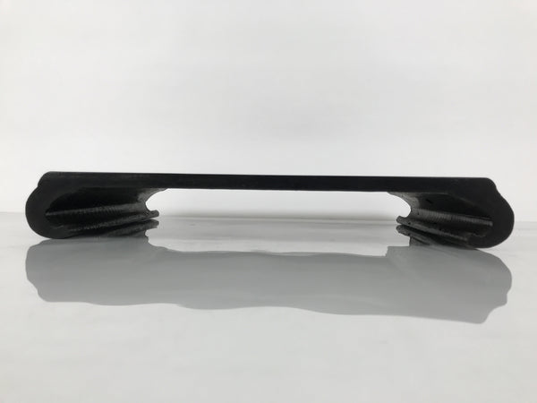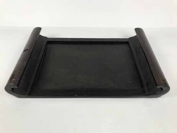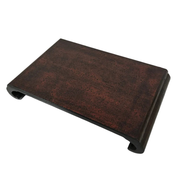 Used for the display of flower vases, ikebana arrangements, bonsai, and more, this striking rectangular kadai features the wakasa nuri style (red and black rippled pattern). It has a broad surface fit for medium to large ikebana and bonsai displays, and stands on two curled, sturdy bracket legs.
