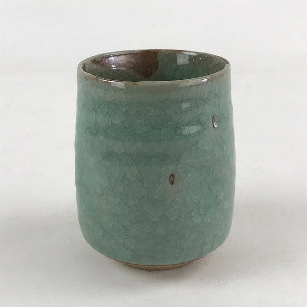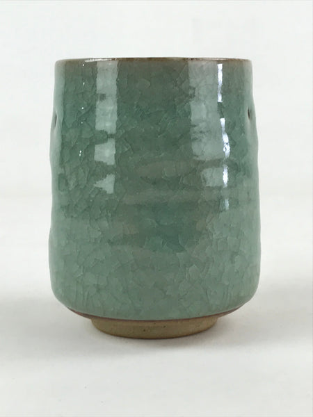 Japanese Ceramic Yunomi Teacup Vtg Pottery Large Light Green Crackle Glaze TC366