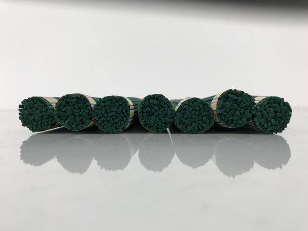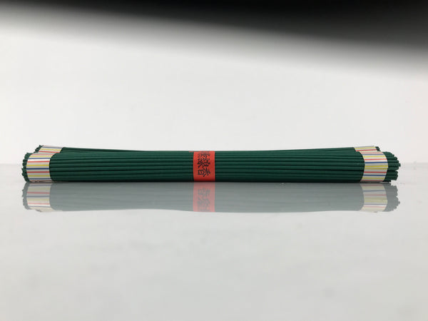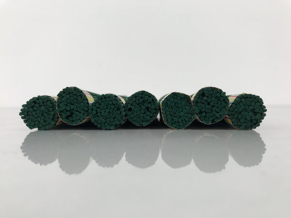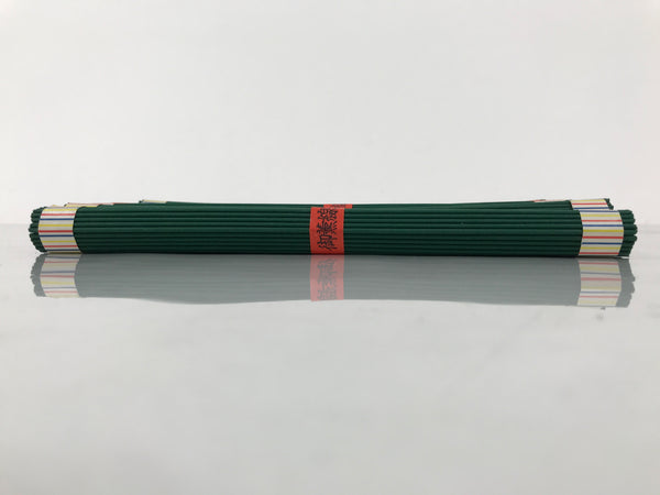 These are vintage Japanese Buddhist o-senko, incense sticks cased in a wooden box. It contains about four hundred and fifty-five sticks; seven bundles of incense sticks, and about sixty-five incense sticks in a bundle. Red paper bundling the sticks has a Japanese inscription.