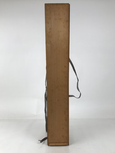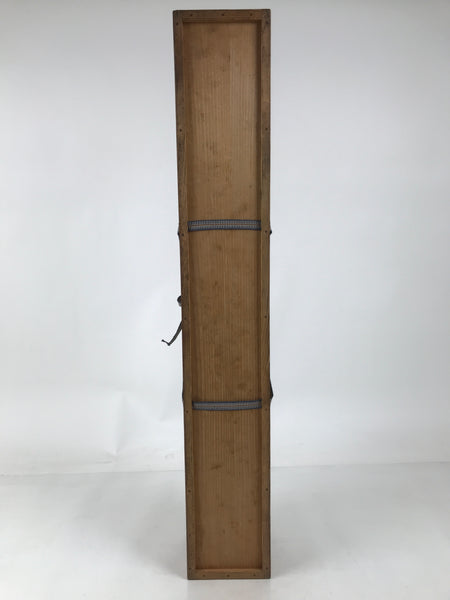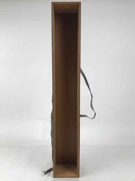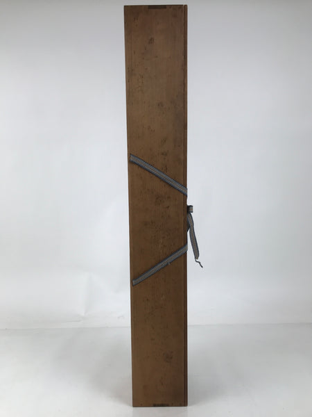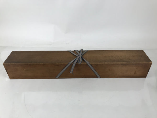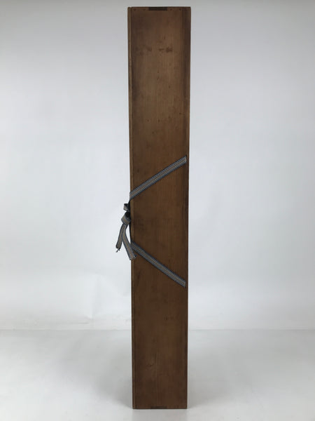 This long, lidded box is made of wood and has a dark brown color. It has strings to secure the lid. It is very long and possibly used to store a boxed kakejiku scroll. It is excellent for general storage, DIY, or decoration.