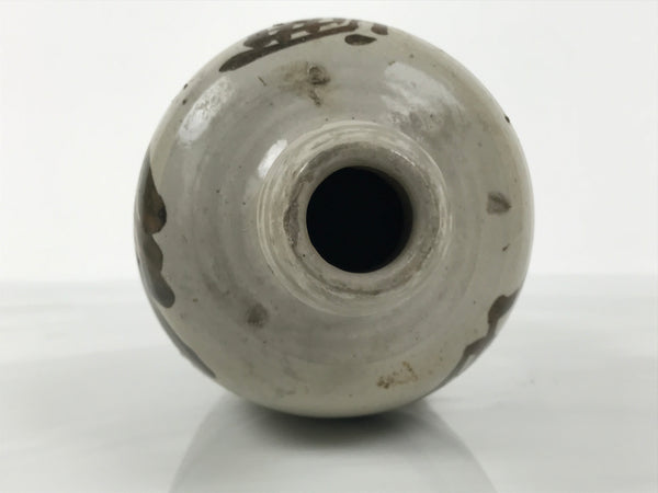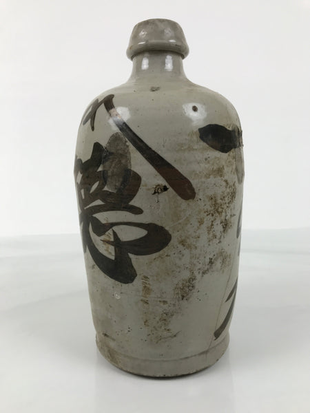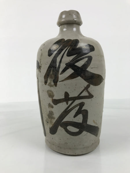This is an antique Japanese ceramic sake bottle. It is called a Kayoi-Tokkuri and is used to pour sake. The commuting sake bottle became popular as a rental container for liquor stores in the Edo period when sake began to be consumed daily. This gray bottle has brown characters.