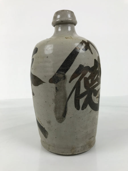 Antique Japanese Ceramic Sake Bottle Kayoi-Tokkuri Gray Kanji Yamatoku TS851