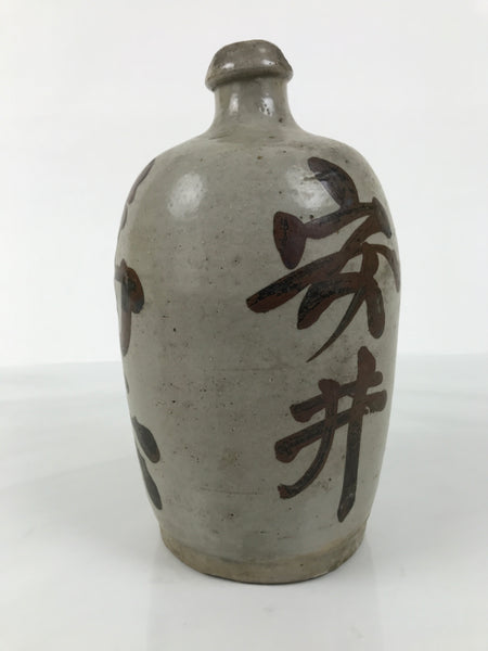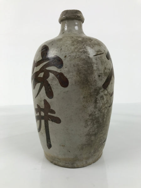 Antique Japanese Ceramic Sake Bottle Kayoi-Tokkuri Gray Kanji Yasui Manbei TS852