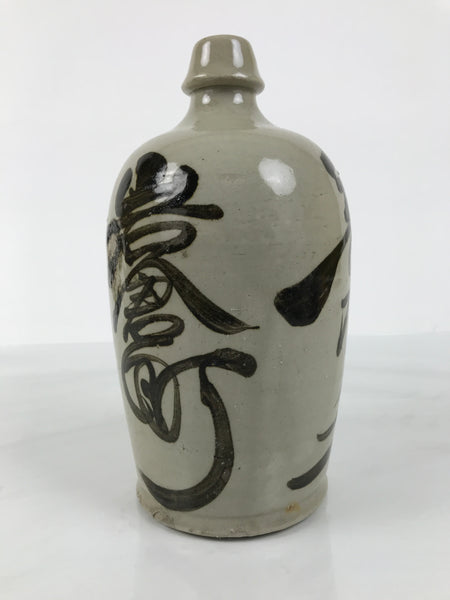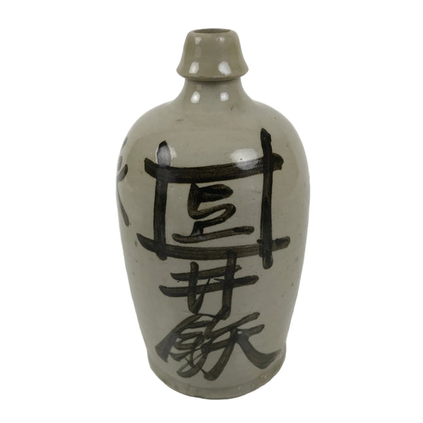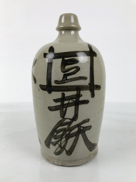 Antique Japanese Ceramic Sake Bottle Kayoi-Tokkuri Gray Kanji Iwakura TS856