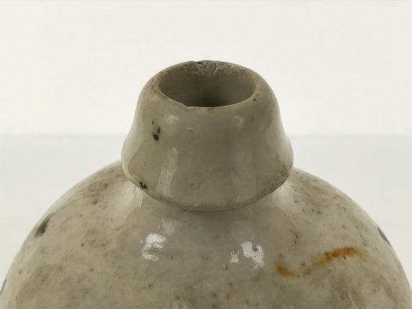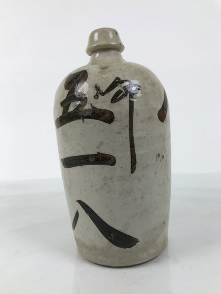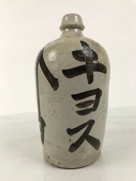 Antique Japanese Ceramic Sake Bottle Kayoi-Tokkuri Gray Kanji Kiyosu TS857