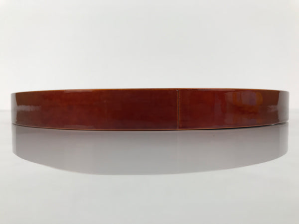 Japanese Lacquered Wood Serving Tray Vtg Hida Shunkei Round Brown Grain L550