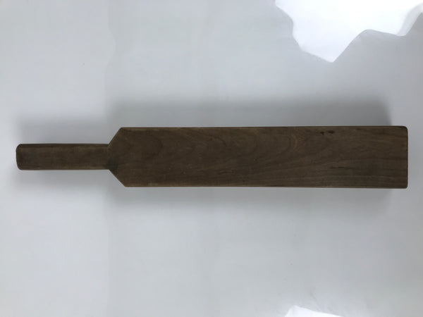 This wooden mold is one panel and in a paddle shape with five round slots that will make a half-sphere shape when used. This mold can be used to make sweets or as an eye-catching decorative item.