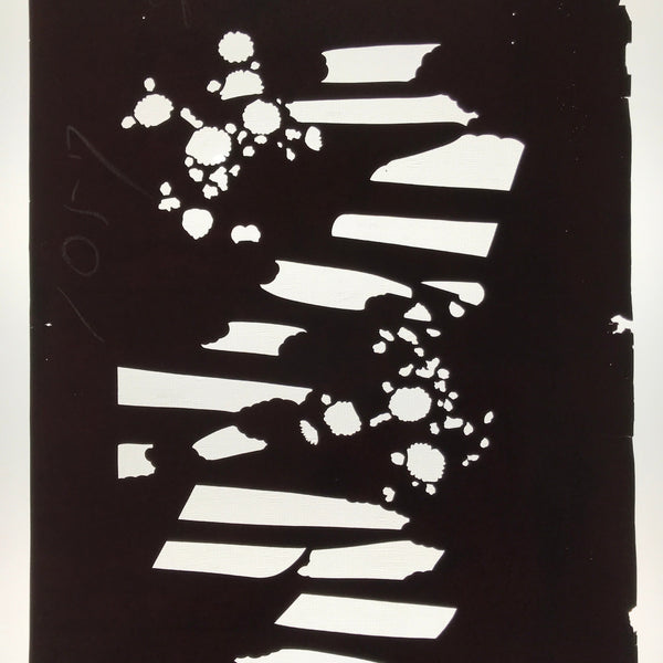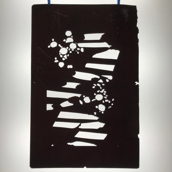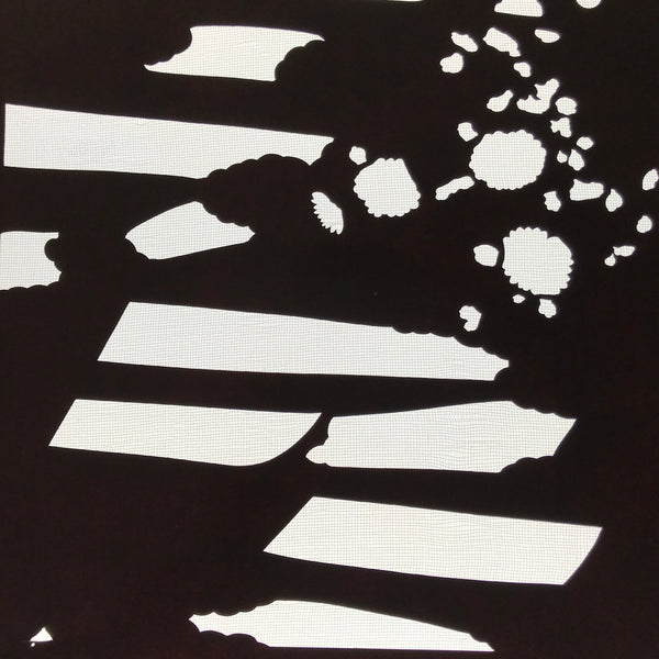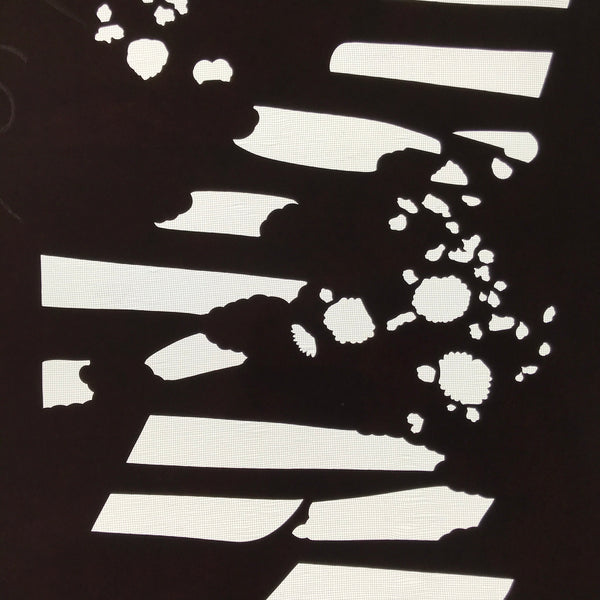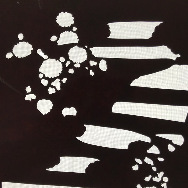 Using traditional mulberry paper, this katagami stencil with silk mesh backing features a silhouetted background with some flowers and is part of a much larger set of katagami. Unfortunately, these sets often get separated or mixed up over time.