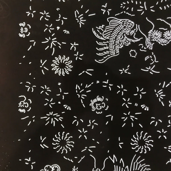 Japanese Katagami is a stencil pattern for dyeing textiles used for printing designs and patterns on kimono and other fabric items.