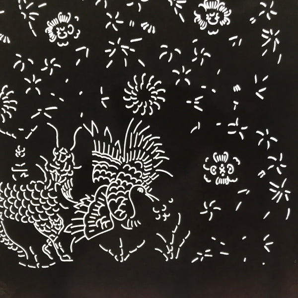 Antique Japanese Katagami Paper Kimono Stencil Katazome Kirin Crane Floral C907