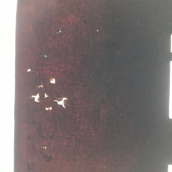 • Good condition considering its age. Tear in silk backing on top edge. Tiny holes on edges from pinning to fabric. Wear and tear due to age and use.  Please see the pictures carefully.