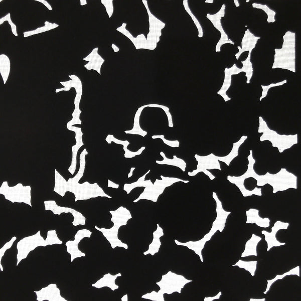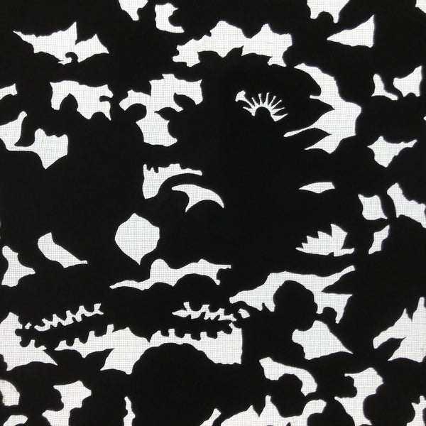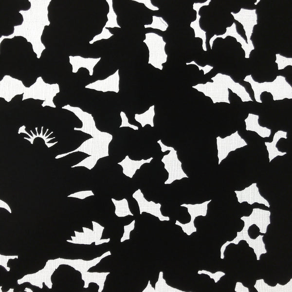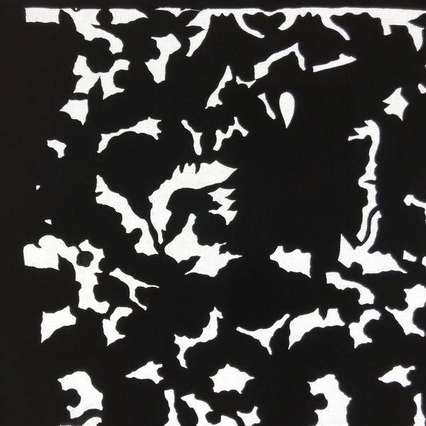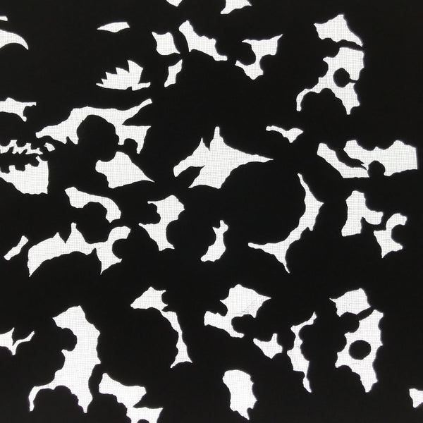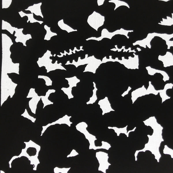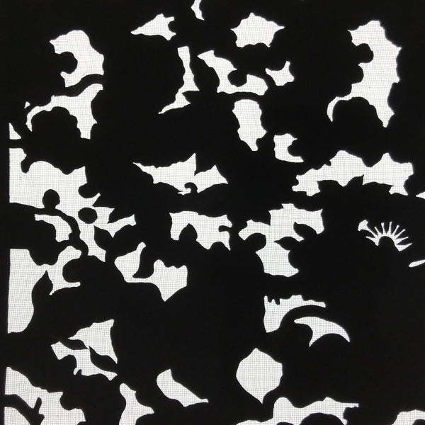 Using traditional mulberry paper, this katagami stencil with a silk mesh backing features  the background part of a lush flower design. Though it is the background piece, it has a lovely silhouetted look.