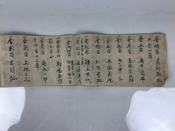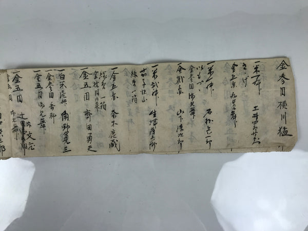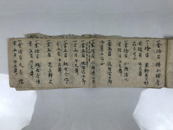 This is a vintage Japanese funeral record book called koten shoshiki kisaicho in Japanese. It is made of washi paper and is handwritten. It contains a record of money given by attendees at the funeral, with their names.