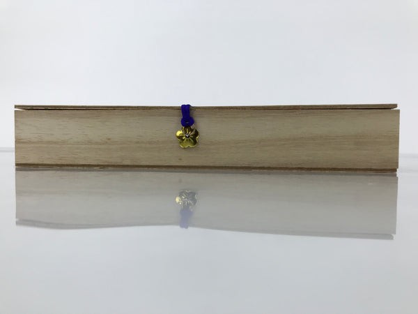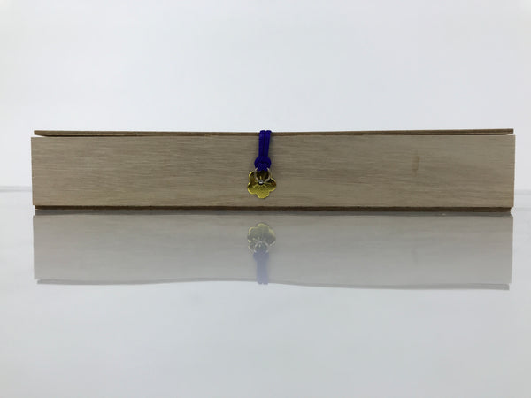 These are vintage Japanese Buddhist o-senko, incense sticks cased in a wooden box. It contains about four hundred and fifty-five sticks; seven bundles of incense sticks, and about sixty-five incense sticks in a bundle. Red paper bundling the sticks has a Japanese inscription. Purple string ties the wooden box and the lid, and the string is set with plum blossom-shaped metal parts on the box sides.