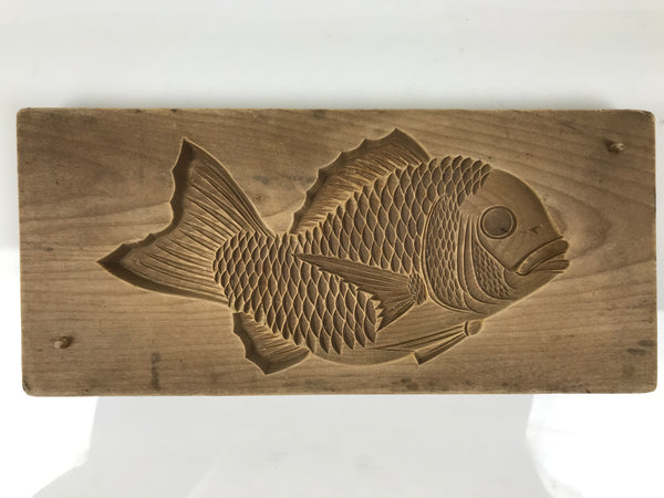 Japanese Wood Carved Kashigata Cake Mold Vtg Sweet Wagashi Tai Madai Fish Kg819