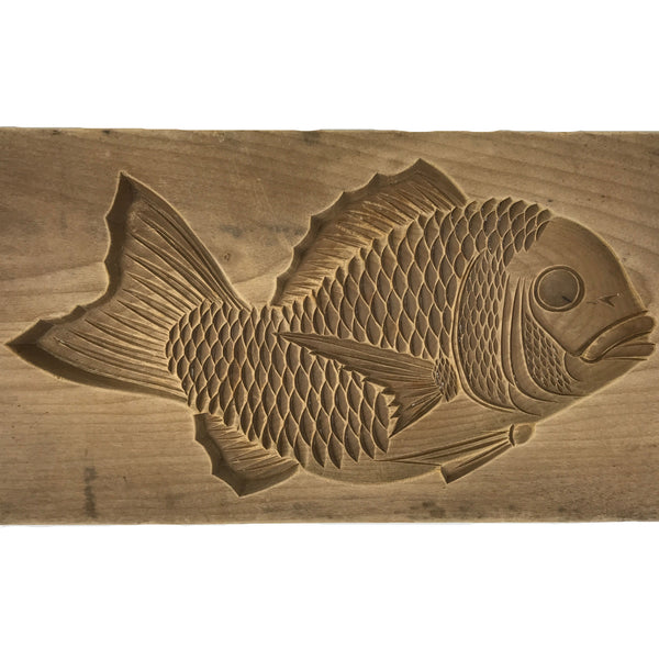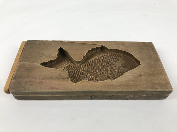 This two-panel kashigata mold is carved with the design of a sea bream fish (tai or madai). Served often in celebratory meals, this vibrant red fish symbolizes good luck. This mold can be used to make sweets or as an eye-catching decorative item.