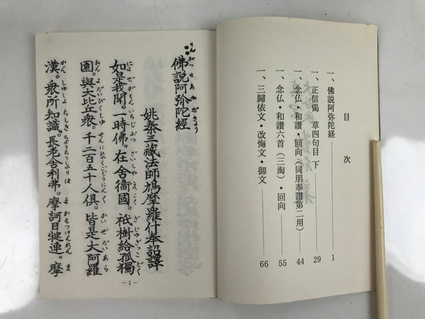 This is a vintage Japanese Buddhist prayer book. This book's title is Shoshinge and other texts for Buddhist Jodo Shinshu school Otani movement. This sutra book has a brown cover. It was published in 1987 (Showa 62).