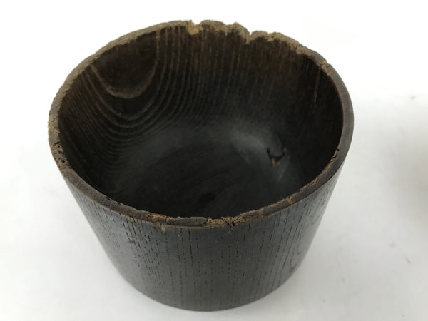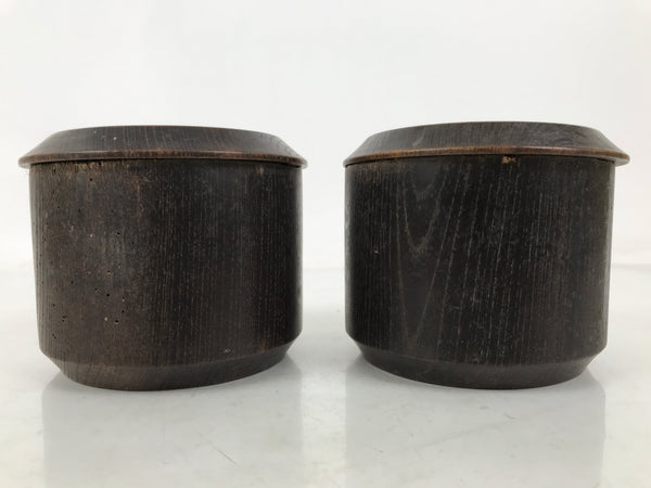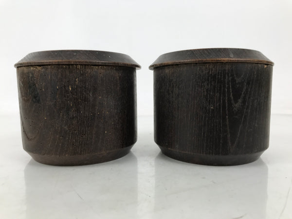 This is a vintage goishi, or go stone, set used to play the popular strategy board game Igo, or Go. This beautiful set of game pieces made from black stone and white shell is contained in lidded dark brown wooden bowls for easy, decorative storage.