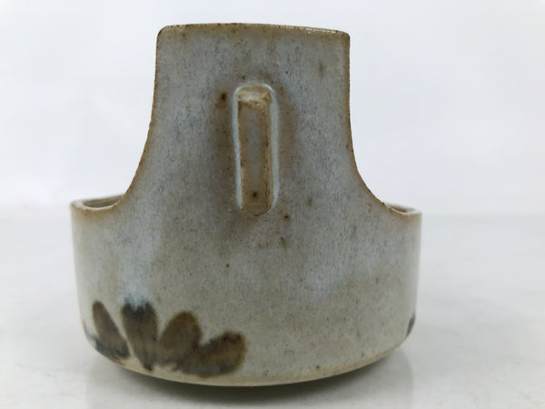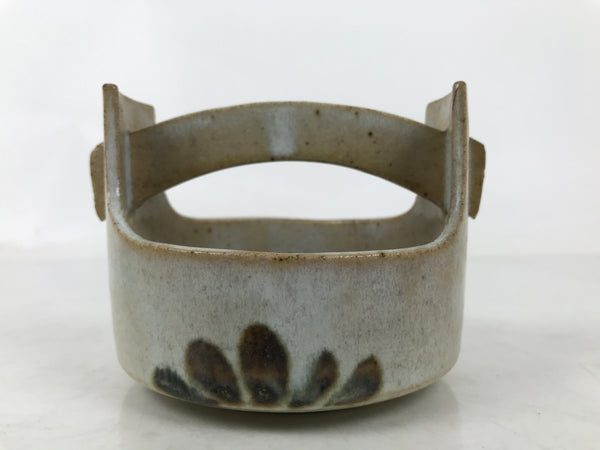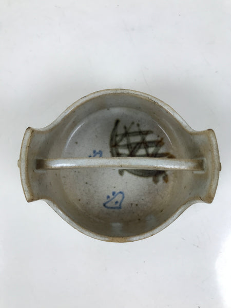 This vintage Japanese ceramic small bowl, also called kashiki or kashibachi, is gray with a foggy white glaze on top. It features brown leaves and a brown mesh, and blue chidori birds, or plovers, a popular traditional pattern. It is a basket-like shape, with a handle at the top. It is ideal to serve snacks or small food when hosting guests or parties.