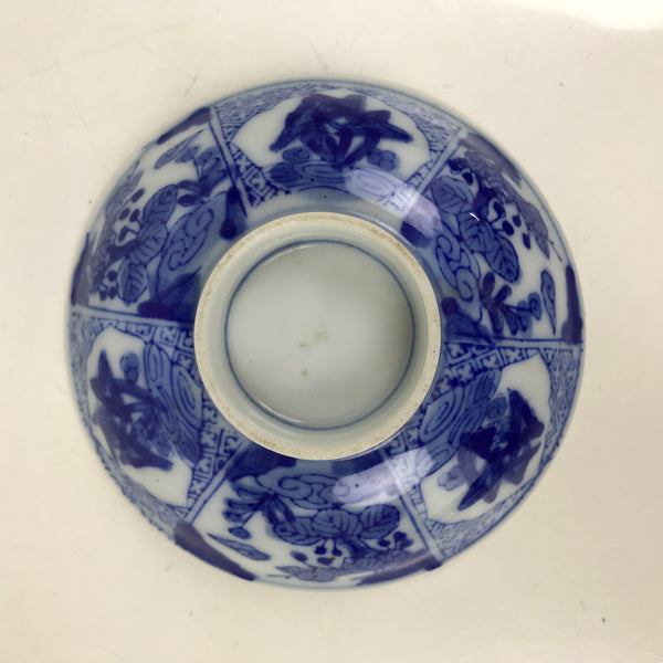 Japanese Porcelain Sometsuke Lidded Bowl Owan Vtg Pottery White Blue Floral Y298