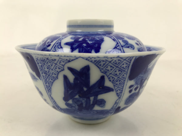 Japanese Porcelain Sometsuke Lidded Bowl Owan Vtg Pottery White Blue Floral Y300