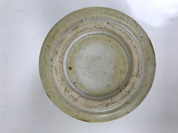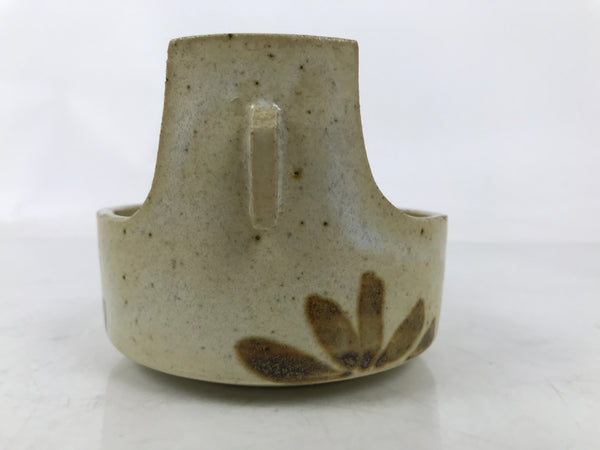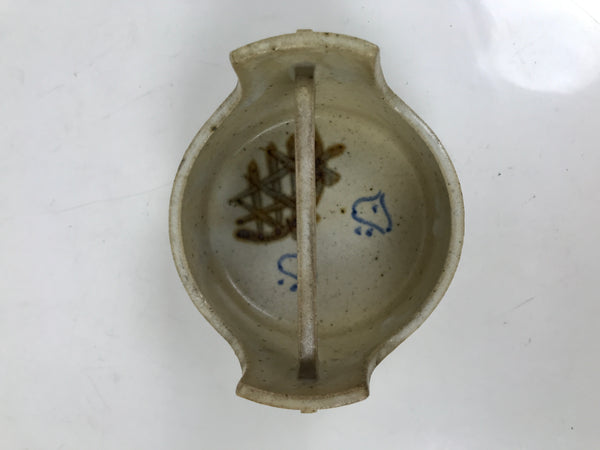 This vintage Japanese ceramic small bowl, also called kashiki or kashibachi, is beige with a foggy white glaze on top. It features brown leaves and a brown mesh, and blue chidori birds, or plovers, a popular traditional pattern. It is a basket-like shape, with a handle at the top. It is ideal to serve snacks or small food when hosting guests or parties.