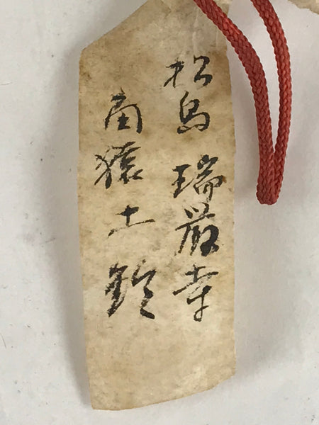 This is a vintage Japanese clay bell, Dorei or Tsuchi-Suzu. The design of the zodiac symbol's monkey. There is a piece of paper on the top that says Matsushima, Zuiganji Temple, and Monkey. Dorei bells have a long history and have been used in festivals and ceremonies since the Jomon period (about 13000 to 2300 years ago) when they were said to have the power to ward off evil spirits.