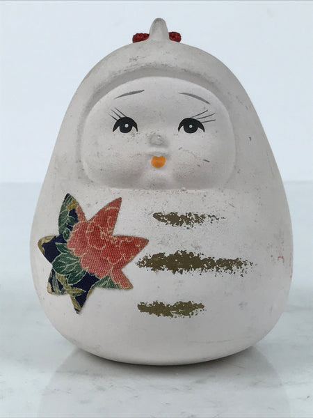 Japanese Clay Bell Dorei Hime Daruma Vtg Tsuchi-Suzu Momiji Peony White DR646