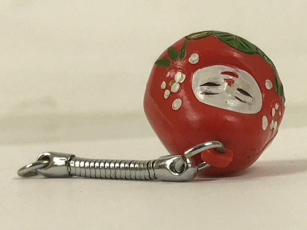 Japanese Resin Hime Daruma Doll Bell Keychain Vtg Metal Chain Amulet Red JK874