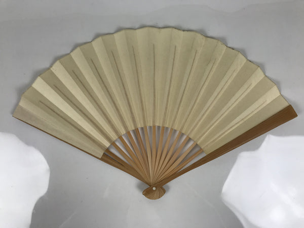 This is a traditional Japanese folding fan called sensu. You can use this when it's hot or as decoration. Both sides are beige and blank with a gold top border. This fan is perfect for DIY, painting, and drawing. The frame is made of natural bamboo.