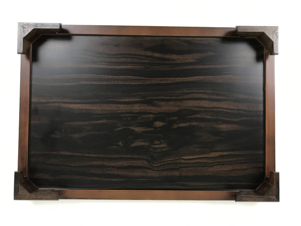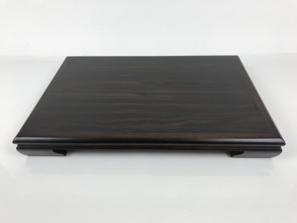Used for the display of flower vases, ikebana arrangements, bonsai, and more, this large, rectangle-shaped kadai stands on four sturdy and short legs. The color is a dark brown and coated with a clear lacquer finish that showcases the stand's gorgeous natural wood grain, and has a smooth finish.
