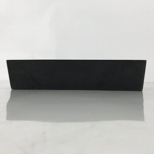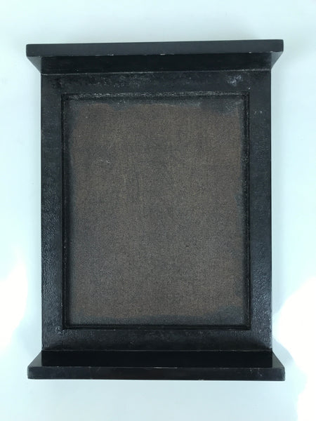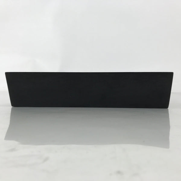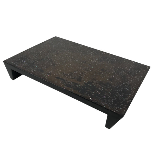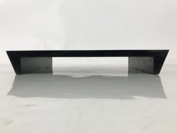 Used for the display of flower vases, ikebana arrangements, bonsai, and more, this classic, rectangular-shaped kadai with angular bracket legs is a glossy black lacquer with numerous sparkling abalone/mother of pearl flecks (raden).