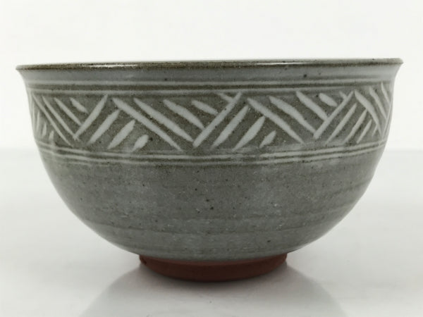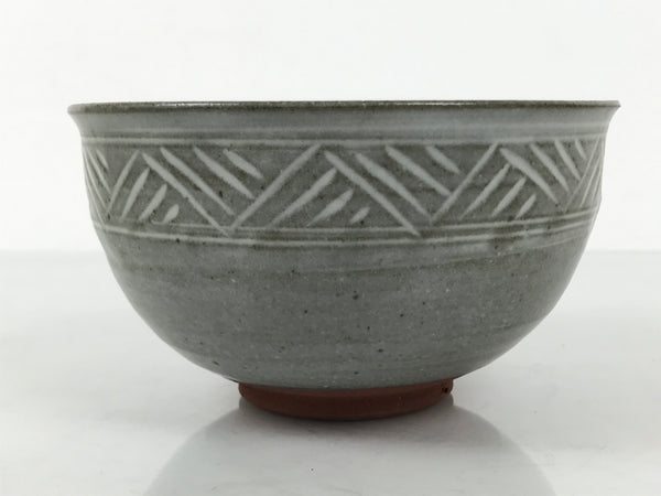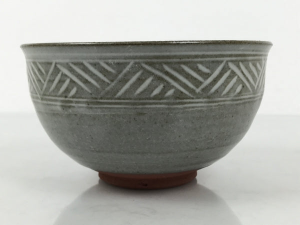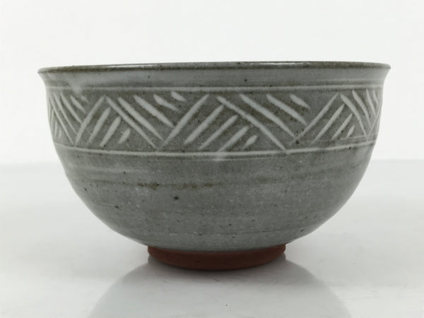Japanese Ceramic Green Tea Bowl Matcha Chawan Vtg Mishima Gray Pottery CHB138