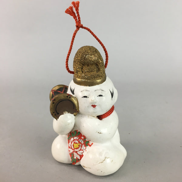 Japanese Ceramic Kokeshi Doll Vtg Pottery Figurine Child Playing Drum Bib KF185