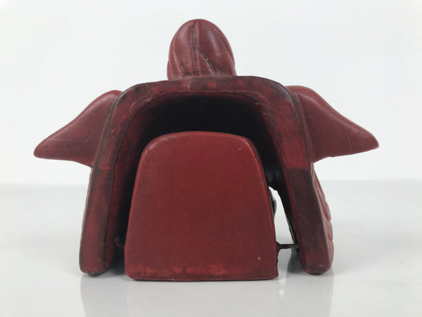 Japanese Clay Shishi Dancing Lion Dog Mask Small Container Vtg Komainu Red OM92