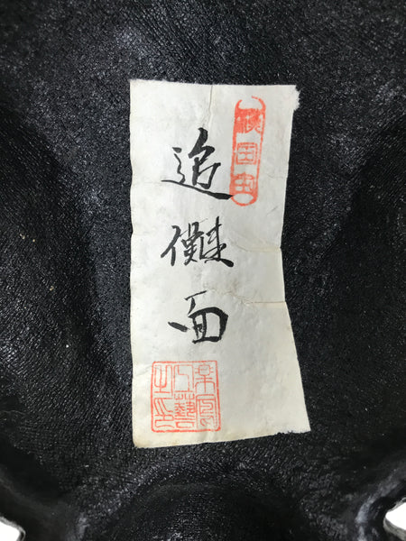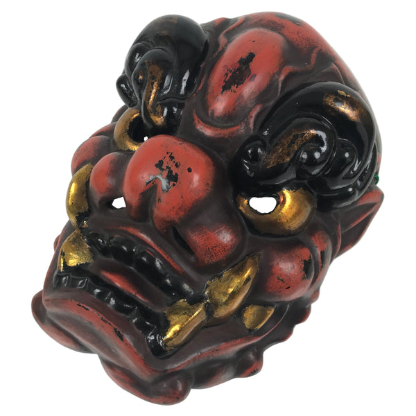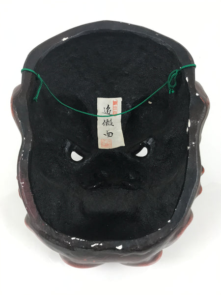 This is a large vintage Japanese plaster noh mask (noh-men) decoration. This character is the face of an angry ogre (tsuina oni). Oni, in general, are popular characters in Japanese folklore that typically represent misfortune, disaster, and disease. As such, these characters are often chased away or thrown out (much like during the Japanese holiday Setsubun). This mask has a green cord at the back for hanging. It can be used for all kinds of home and office decor.
