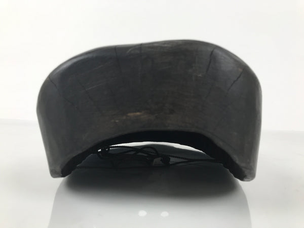 This is a vintage Japanese carved wooden noh mask (noh-men) decoration. This character is the face of an old man (Okina). This character is the oldest of all human-like Noh masks and is characterized by round eyebrows and a long bead (often made of real hair or fibers). It is said okina brings longevity and prosperity to families. This mask has a gray string fastened through two holes on the sides. It can be used for all kinds of home and office decor.