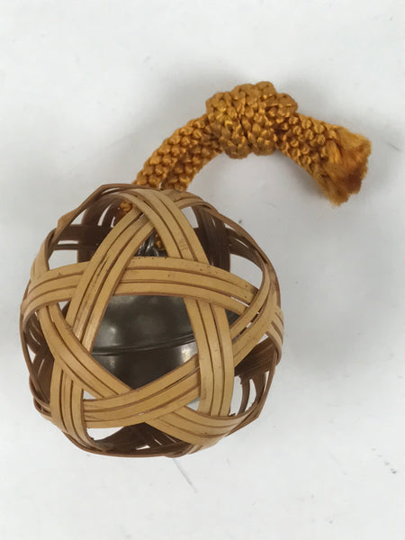 This is a vintage Japanese bamboo and metal bell amulet or keychain. Expertly woven with fine strips of bamboo in the hexagonal mutsume-ami style (also called Shaker), this cute trinket with a braided gold cord is perfect for accessorizing.