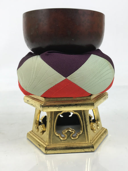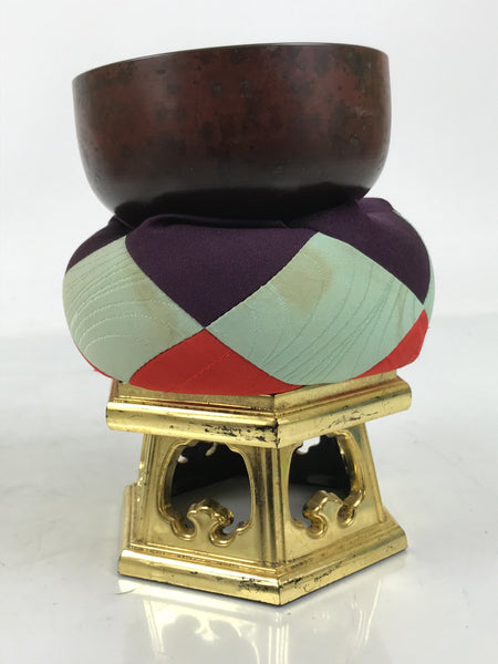 Japanese Buddhist Altar Fitting Copper Orin Bell Singing Bowl Resin Stand BA616