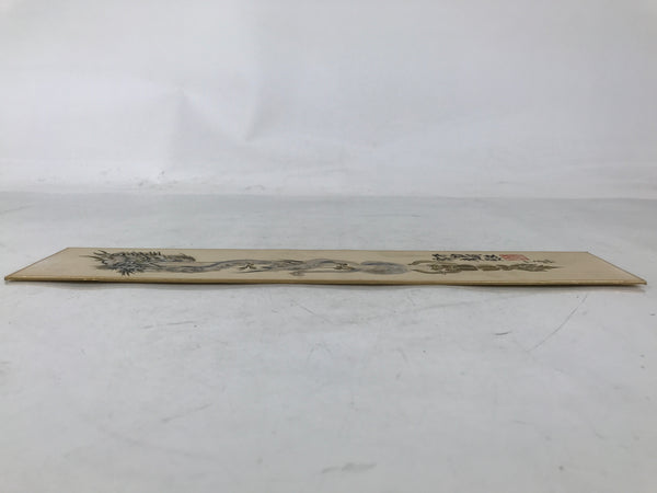 This vintage Japanese tanzaku long-type shikishi art board features a dragon wrapped around a sword. The sword belongs to Fudou Myouou, or Acala, a Buddhist god. The shikishi is hand-painted, titled, and has a sign and a red seal.