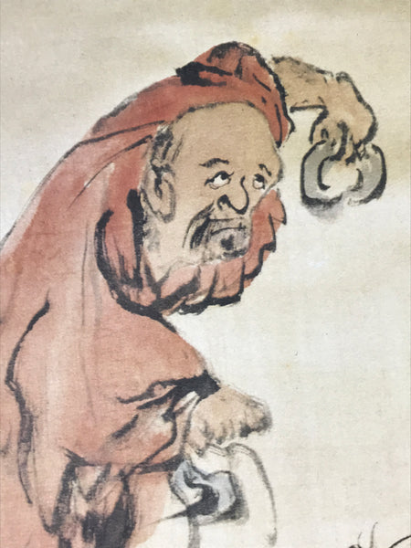 This item is a Japanese shikishi art board. It is a printed reproduction of the painting Tora by Tomioka Tessai. It features a monk riding a tiger.