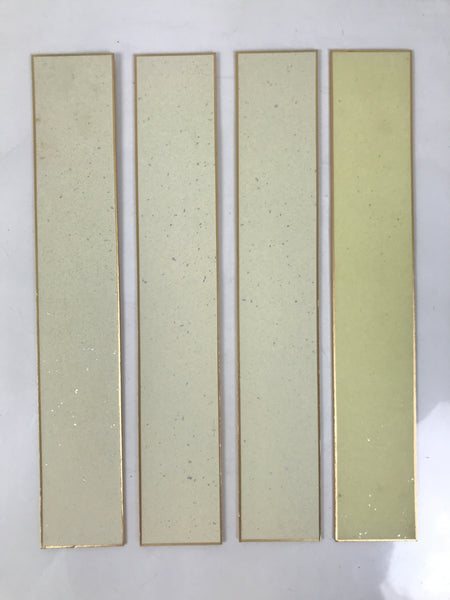 This is a vintage set of blank Japanese tanzaku long-type shikishi art boards. They are commonly used for writing seasonal messages and wishes, haiku, and Buddhist themes. This set of four is plain white with a simple gold border. Tanzaku are often displayed in narrow wooden frames to hang on the wall.
