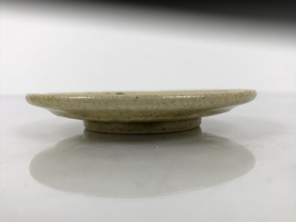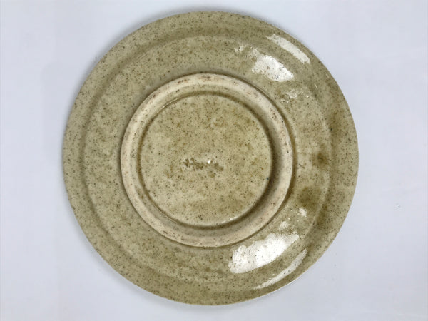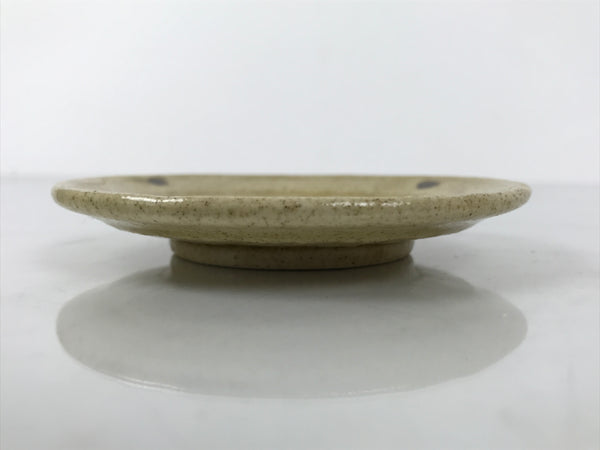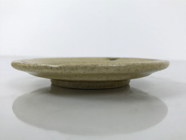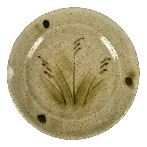 Japanese Ceramic Small Plate Mamezara Side Dish Vtg Beige Green Plants Y465