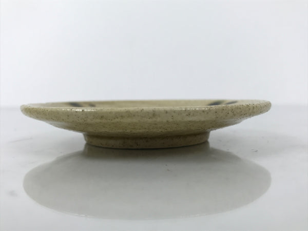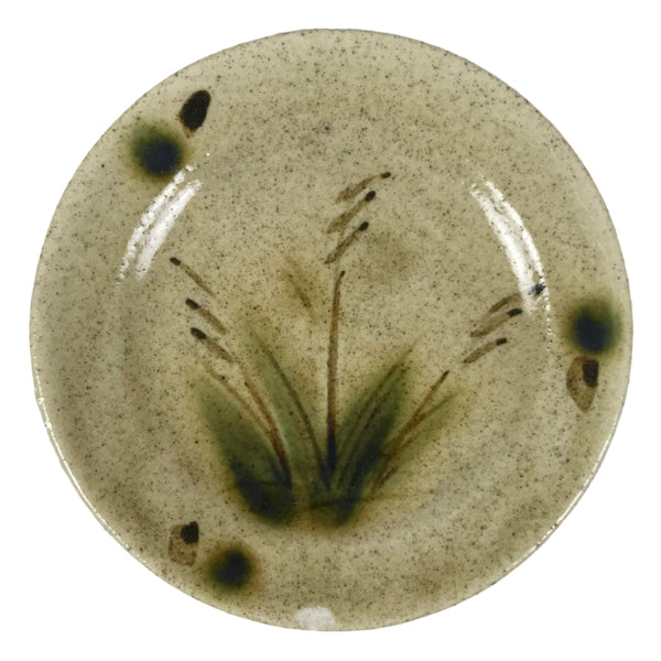 Japanese Ceramic Small Plate Mamezara Side Dish Vtg Beige Green Plants Y468